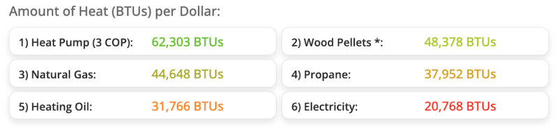 Now, knowing heat content in each type of heating fuel, we can calculate how much heat you get for your buck!